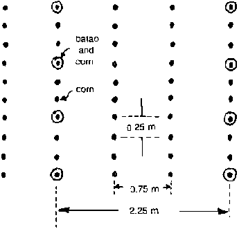 · Plant population -- 53,333/ha for corn and 5,926/ha for batao