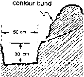 The contour bund checks the rapid downward flow of water during heavy rains and the topsoil that goes with it.