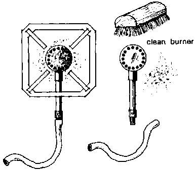 111. Sometimes the flame may begin to turn yellow after it has been burning well. This may mean that the burner has become full of a black material called soot.