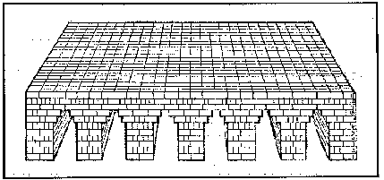 Place the remaining bricks perpendicular to these rows as shown in the drawing, leaving a small space between the bricks to allow the heat and gases to pass through the kiln.