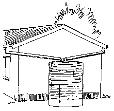 Every corrugated iron tank must be fixed in position with steel ropes or heavy 16-gauge fence wire. The larger the tank the greater the risk of storm damage if the tank is empty and not tied down to the plinth (see Fig. 4.4). A tank supplied by two gutters is shown in Fig. 4.5.