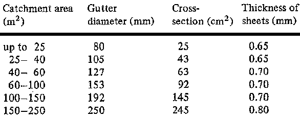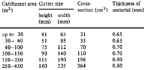 General rule 1.0 cm² cross-section of gutter and downpipe per m² catchment (roof) area.