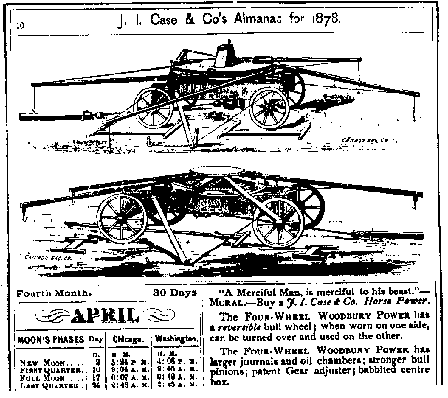 From about 1870 on, the focus of interest shifted to other aspects, including safety of operation. Above all in the field of agriculture, the animal power was regarded as a rather dangerous instrument, though that was at least partially attributable to the frequent practice of having them operated and attended by children.