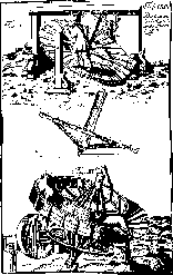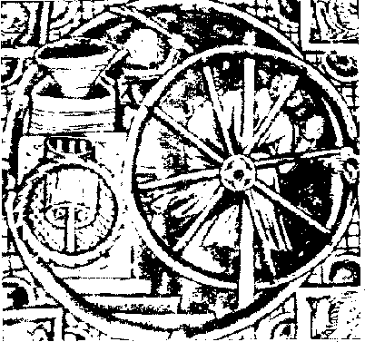 This eliminated the necessity of someone who was familiar with the animal being in constant attendance, which certainly provided a major incentive for the use of treadwheels and disks. Moreover, fascination with the engineering feat embodied in such ponderous new machines doubtlessly contributed to their rapid rise in popularity. (An ox-powered treading disk that was used well into the third decade of this century at Schillingsfurst Castle in Franconia is still on display there.) Without having conducted a thorough study of pertinent literature, and in the absence of practical test results, it would be difficult to say to which extent treadwheels and disks were able to effect a real increase in efficiency. Judging by the data on a water-raising treadwheel that was in operation until the mid-'30s at Conradsburg in the Harz Mountains, one could easily come to the opposite conclusion, since the system was veritably ridden with friction losses: the bearing had to support not only the weight of the disk or wheel, but also that of the animal.