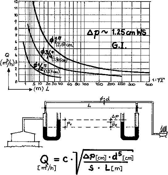 galvanized steel pipe allowing for a pressure drop of p = 1.25 cm WC. Bends