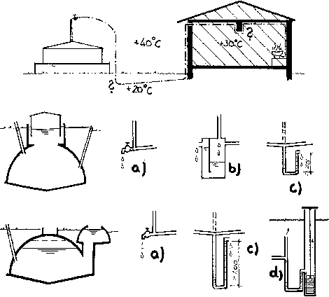 Particular problems also arise with biogas-operated refrigerators. The composition of biogas varies substantially from day to day. The gas pressure fluctuates excessively with the amount of gas stored even in a floating-drum plant. Special' stable-burning jets are therefore needed - especially if the refrigerator is thermostatically controlled and the flame burns only when required. On every ignition there is a risk of the flame going out. Gas will then discharge without burning. The gas supply must therefore automatically be cut off if the flame goes out.