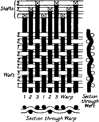 So far the weaving of plain weave fabrics has been considered. Of the eight fabrics listed in Table I.1, the first four are of this type and can be woven on looms incorporating the simplest basic shedding mechanisms as shown in Fig. III.5. The other four fabrics are twills which require additional heald staves and tappets.