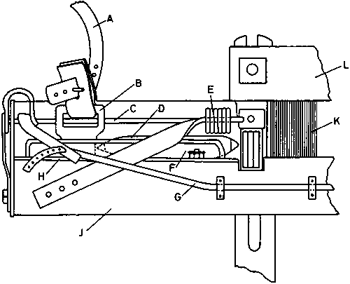 In the fast-reed loom, a spring-loaded finger carried by the sley enter in abrupt contact with a step in a metal block-called the frog - as the sley approaches the beat-up position should the shuttle fail to enter the receiving box. The striking of the frog by the finger causes instantaneous disengagement of the loom starting handle and the simultaneous application of the loom brake.