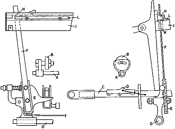 The principal difference between the two picking motions is indicated by their names. In the overpick motion, the picking sticks are in the form of swinging horizontal arms located above the shuttle boxes. The corresponding pickers are connected to the sticks by leather straps. In the under-pick motion, the picking sticks, which are mounted vertically below the shuttle boxes, are secured on extensions of the rocking-rail. The sley-swords are secured and pivot on the picking sticks. The upper ends of the latter project through longitudinal slots cut in the sley and in the base plates of the shuttle boxes. The pickers are themselves slotted so as to fit over the upper ends of the picking sticks. Each picker slides along its box plate when delivering a pick as the top end of the picking stick is being moved sharply inwards in the direction of intended shuttle motion. It will be apparent, from the diagrams, that the shuttle-box fitments for the over-pick motion are much more complicated than those for the under-pick motion. Consequently, the settings and adjustments of the individual parts require much more attention.