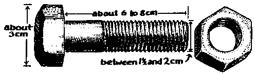 With a large knife, slice the piece of wood down the middle to a distance of 16 centimeters. Force the bolt into the slit and down four centimeters from the top. Place the nut on the bolt.