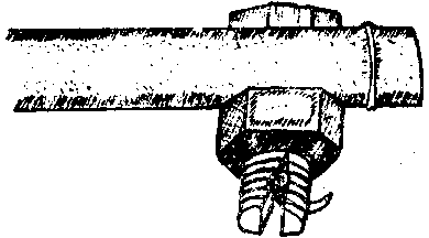 In cutting the bolt with the hacksaw, first make a vertical cut about 1 cm deep. Then cut between 2 and 3 mm away from the first cut. (mm - millimeter; a millimeter is one tenth of a centimeter.) This second cut should be a diagonal one. It is important that the cut be made no larger than 3 mm. If the cut is wider, it will be difficult to remove any nails.