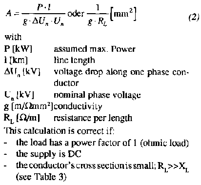 Fig 4 is a tool to estimate the cross section A. Anexact determination includes the line length. The graph is based on formula (4):