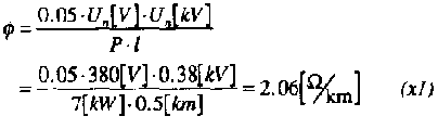 of P for 380V and 500m line length