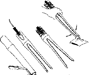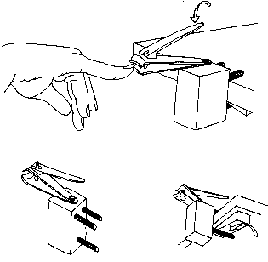 People in wheelchairs, or people who have trouble bending down can pick up things from the floor with a 'helping hand'. It is made of a piece of bamboo. Carve a groove at both ends of the bamboo. Put a piece of wood in one groove to serve as a wedge and fix it with rope or rubber bands. When you press the bamboo lightly at the sides, it works like a pair of pincers.