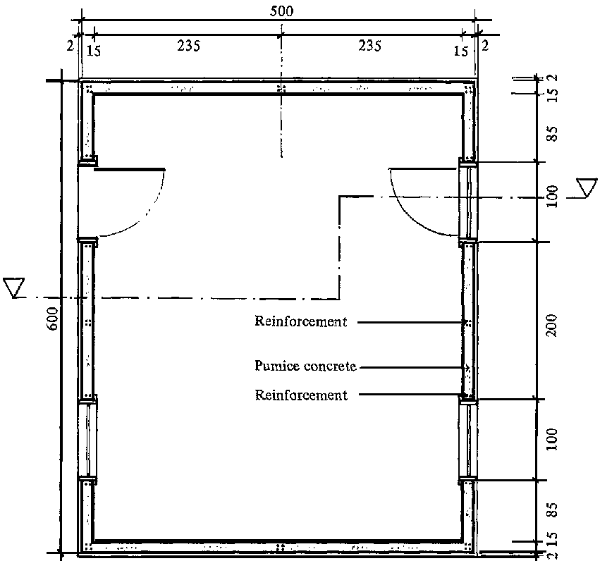 lattice-reinforced pumice-concrete panels (100 × 50 5 cm) as wall elements | | |
