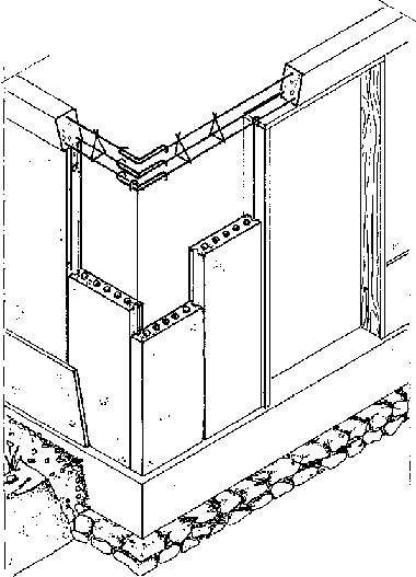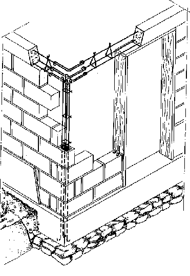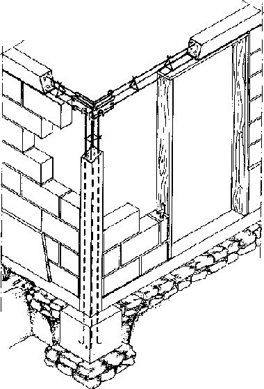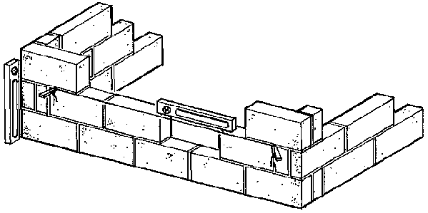 In earthquake areas, it is a good idea to fill the corner cavities with reinforced concrete.