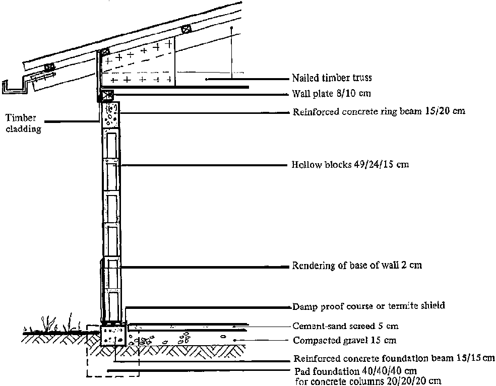 4.3 b) House with pumice-concrete cavity-block walls; fair-faced concrete-column skeleton |