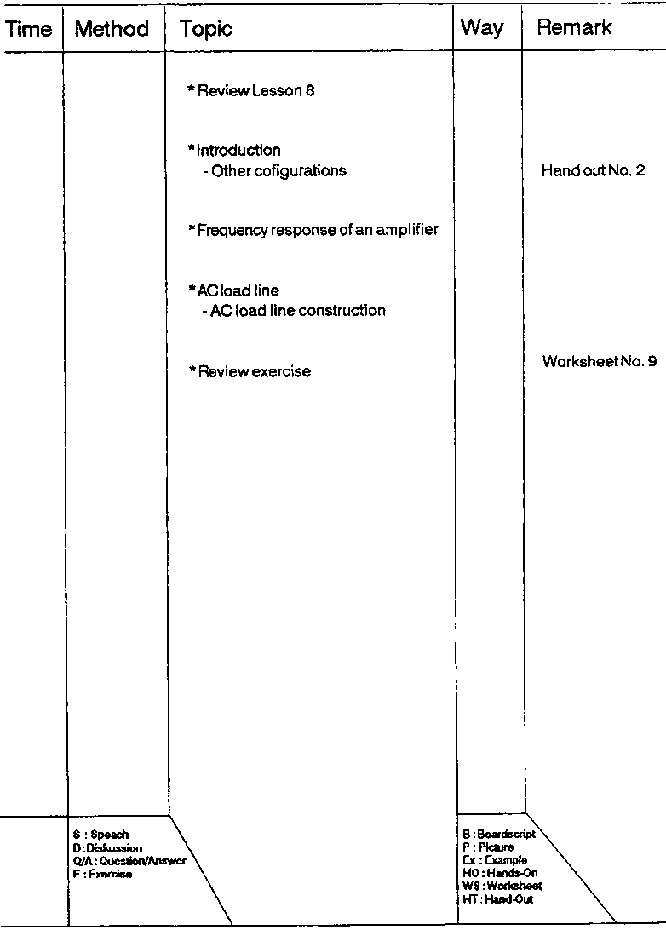 Fig. 9-1 shows the typical frequency response of an amplifier. At low frequencies the output voltage decreases because of coupling and bypass capacitors. At high frequencies, the output voltage decreases because of transistor and stray wiring capacitance.