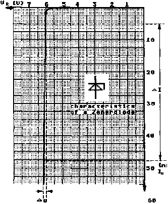 Let us first have a closer look to the characteristics of a zenerdiode. The characteristics of one called B6Z2 is shown in fig. 105. It is easy to see, that the zenerdiode has a very flat characteristics first (which means a very high resistance) and from a special point on it has an extremly steep-characteristics (which means a very low resistance).