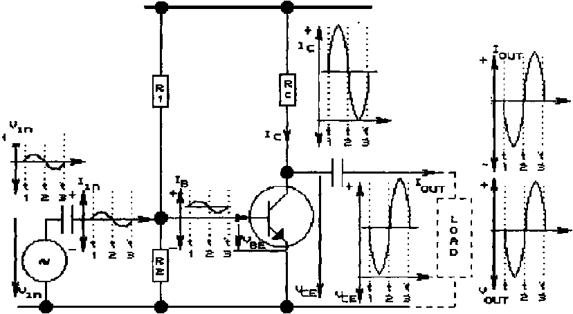 We know now the basical components of a class A amplifier and it is possible to have a closer look to the effects in this circuit when a signal is injected to the input of the circuit of fig. 147 (page 43).