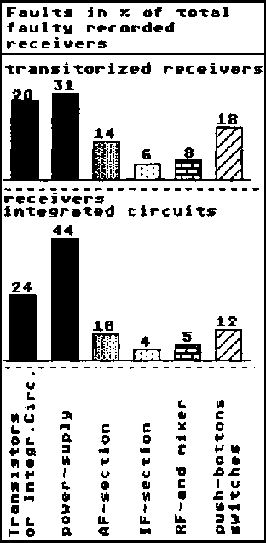 The overall number of receivers with integrated circuits having been faulty was remarkably less than the number of only transistorized receivers.
