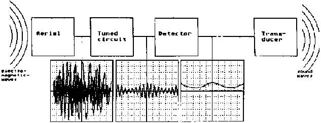 Using this method of visualization we can draw at this stage of explanation a block diagram of the parts of a radio which we have come to know already.