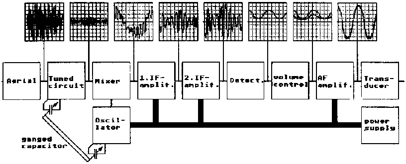 If we make sure that the distance between the frequency of the tuned circuit and the frequency of the oscillator is kept constant, we will find for every radiofrequency the same frequency at the output.