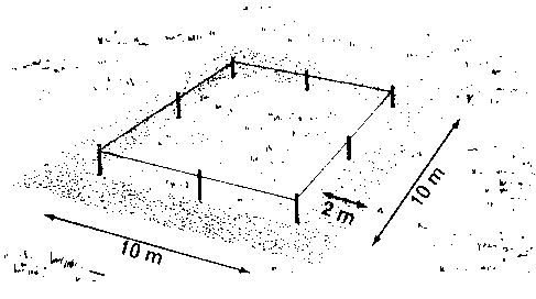 30. Mark out the size of the pond on the ground you have chosen. Each side should be about 14 metres long, 10 metres for the pond and 2 metres for each bank of the pond.