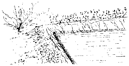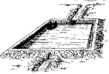 43. When you have finished digging your pond, put the topsoil you have set aside on the banks. Then plant grass on the banks to stop the soil from being washed away by the rain.