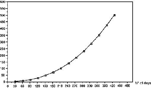 It is therefore possible to forecast the necessary time required for the production of fish for the market, while integrating all of the rearing parameters that need to be assessed individually and the following graph represents the theoretical growth rate for Nile Tilapia in intensive farming conditions.