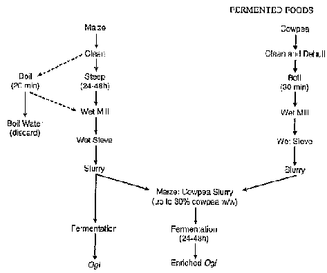 ogi including cowpea protein enrichment; dotted lines show a bypass by which
