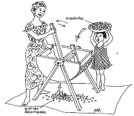· Le décorticage de l'arachide doit précéder le grillage. Il peut s'effectuer à la main. C'est une opération longue et fastidieuse (plus d'une heure par kilo), mais on obtient ainsi des graines bien triées et sans brisures.