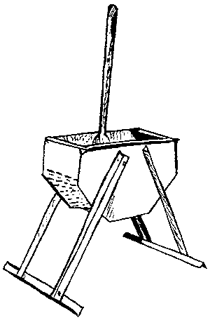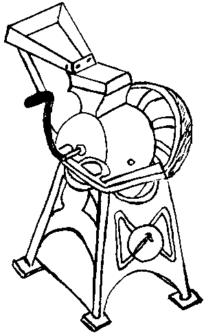 1 A simple feeder made from steel is described in a Tropical Products Institute Publication (TPI: A feeder to improve the performance of a hand-operated groundnut sheller. Rural Technology Guide No. 4 (London, 1977)). The feeder consists of a large hopper with a cup valve in the base which drops a controlled quantity of nuts into the ball of the machine with each movement of the operating handle. Thus, as the number of nuts in the machine is kept small, the effort to operate the machine is lower than normal. The use of a hopper also results in less damage to the individual kernels.