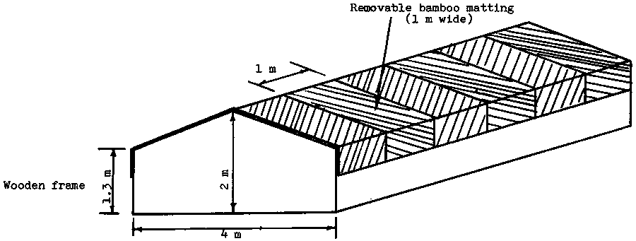 The amount of raw material used requires some provision for storage. To minimise losses due to fungi, insects and the weather, the following type of structures will be needed