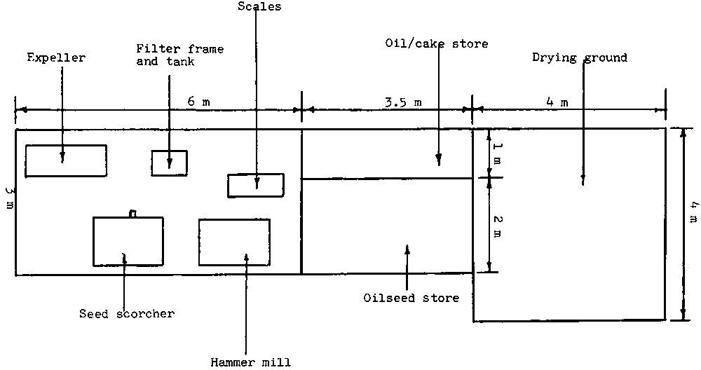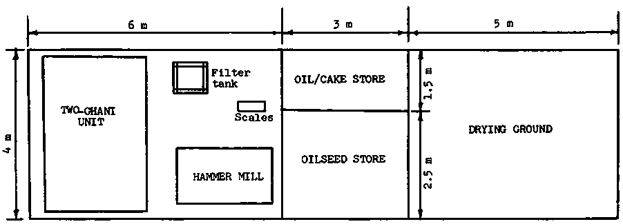 The power-ghani mill is typically a family enterprise and no formal floor plan is required. However, a plan indicative of good practice is provided in figure III.3.