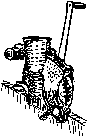 A compact maize sheller for hand operation that can be fitted to the side of a container, allowing the kernels to drop into the container and passing the shelled cobs out to the side. Tension is adjustable according to the diameter of the maize cobs.Price: US$36