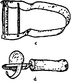 - couteaux divers (figure 3 d);- récipients de cuisson: marmites pour cuisson à l'air libre, avec filet ou panier intérieur (cuisson à l'eau) ou marmites avec couvercle (autoclaves) avec filet ou panier intérieur (cuisson à la vapeur). Dans le cas d'un traitement à la soude, le matériel destiné à contenir la soude diluée bouillante doit résister à un tel traitement (acier inoxydable);