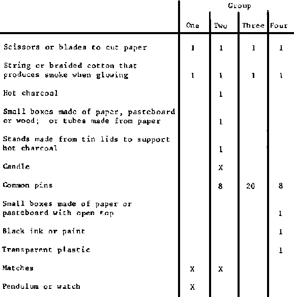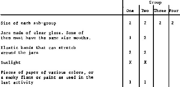 2. If you feel that communication between groups has not been effective, it is suggested instead that each experiment should be done by all the groups. The equipment required to do this would not be much more than would otherwise be needed, since the same equipment can be used by different groups on successive days.