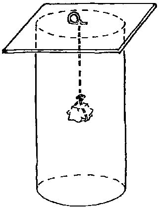 Attach a thin piece of wire to the small stone. Measure enough additional length of wire so that the stone will hang about half way down the tube. Put the stone with the wire attached on the fire. It should become as hot as possible. Place the tube in as little breeze as possible. Attach the end of the wire to the center of the roof. Lower the stone into the tube until the roof rests on the end of the tube. The roof must be flat and rest on the end of the tube so that there are no holes for air to pass out of the tube.