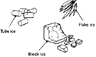 There are various forms of ice crushed, block, broken tube, flake and others. It is best to use crushed ice with pieces of different sizes to allow rapid chilling at first and then continued cooling, though none of the pieces should be larger than 6 cm.