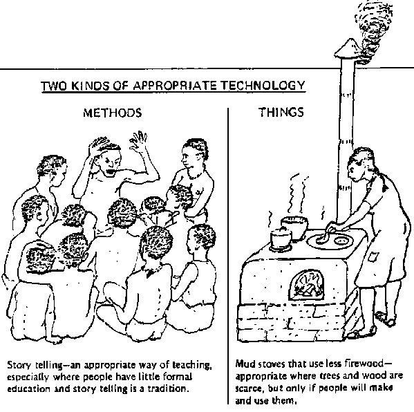 But appropriate technology also refers to METHODS - ways of doing, learning, and problem solving that are adapted to people's needs, customs, and abilities.
