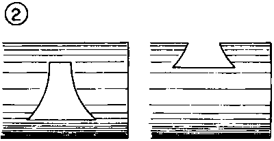 Dovetail trestles consist of a wooden post and two legs. They can easily be made in the forest with no other tools than an axe and a bow saw. Dry and light wood is used. Two dovetail cuts are made on one end of the post (2). The top ends of the legs are square on three sides (3) and fitted into the dovetail cuts.