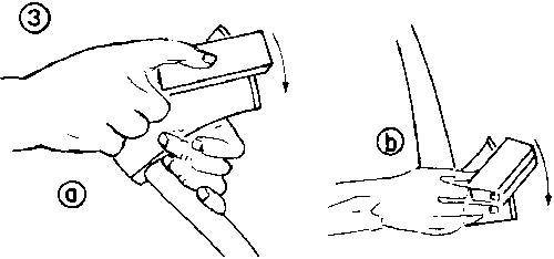 The handle is finished by polishing with sandpaper (4), a piece of glass (for instance, window glass), or a knife.