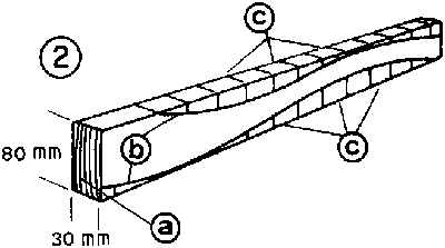 A bow saw is used for making cuts into the wood to be taken off from the scantling (2c).