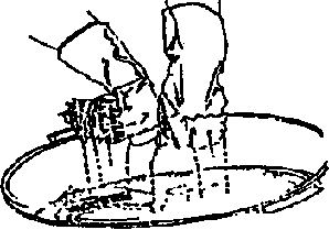 · Remove the net from the container, wring and hold for 5-30 seconds over the bucket or basin to catch any drips;
