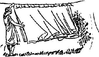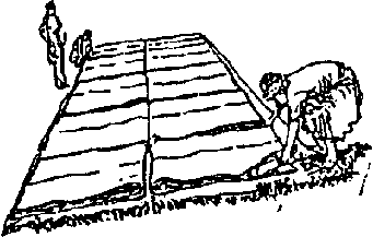 Treated nets may be dried, placed flat on clean non-absorbent surfaces such as plastic sheeting, (fig. 8), or spread on beds or mattresses (with bedsheets removed, and this may help kill bed bugs etc)., or hung up in the shade in the open (fig. 9).