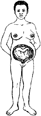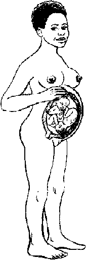 Towards the end of pregnancy, about 95% of babies come to lie in the womb with their heads pointing downwards, so that the head is delivered first (see Figure 11.1). In 4-5% of cases, the baby lies with the feet or buttocks pointing down; these cases are called breech presentations (see Figure 11.2). Rarely, the baby may lie diagonally with the shoulder ready to come out first; this is called transverse lie (see Figure 11.3). All cases where the baby's head does not come out first are abnormal; childbirth may be more difficult and can result in injury or death of the baby or the mother. Transverse lie is especially dangerous, and should always be referred to a hospital. Abnormal lie is most common in women who have had many babies before, or those carrying twins (see Figure 11.4). It is usually possible for a trained person to tell whether the baby is lying in an abnormal position towards the end of the pregnancy. A trained and skillful person must assist in such deliveries. In some cases a Caesarean section (see next chapter) may be necessary.