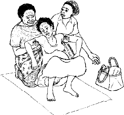 These conditions often occur in the late stages of pregnancy (see details in Chapter 9). If they are not properly controlled during pregnancy, they can become worse during labour. Sometimes they appear for the first time during or after labour. Eclampsia causes fits or convulsions and loss of consciousness or coma (see Figure 11.6). It is especially likely to start suddenly during labour or even soon after the birth of the baby. Severe pre-eclampsia or eclampsia during labour may make it necessary to deliver the baby by Caesarean section. A woman who starts having fits before, during, or after labour should be taken immediately to a hospital for medical care, because her life is in danger.