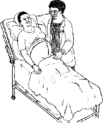 EPISIOTOMY: A cut is made at the entrance to the vagina to enlarge the opening for delivery. It is sewn up after delivery. Drugs are used to stop the pain. |