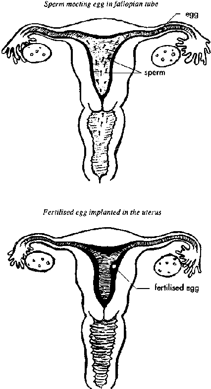 While still in the tube, the fertilised egg begins to divide and grow. At the same time, it continues to move through the tube towards the womb. It takes an average of five days to reach the inside of the womb. Within two days of reaching the womb, the fertilised egg attaches itself to the lining of the womb. This process is known as implantation (see Figure 4.3).